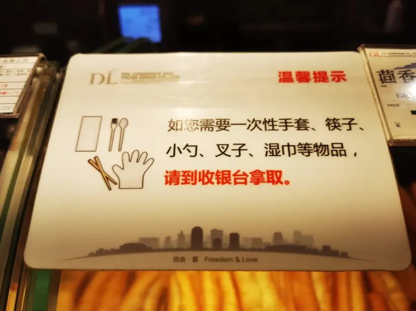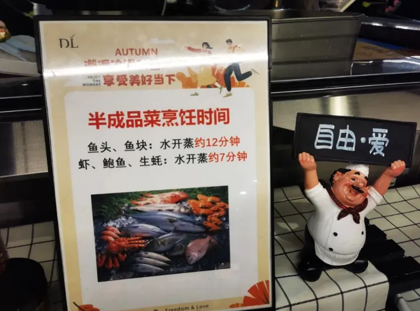 熟食区的商品多、吃法讲究多、设备也多,在这个区域会看到各种提示。