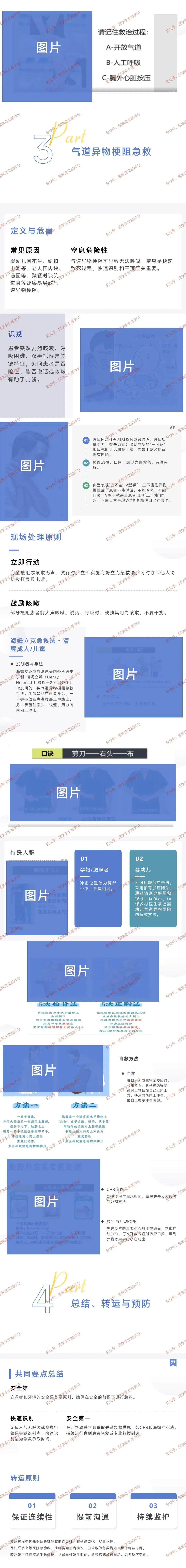 识别要点:突发剧烈咳嗽、呼吸困难、“三不能”(不能说话、不能呼吸、不能咳嗽),双手抓喉(V 型手),严重时口唇青紫、出现三凹征(胸骨上窝、锁骨上窝、肋间隙凹陷)。