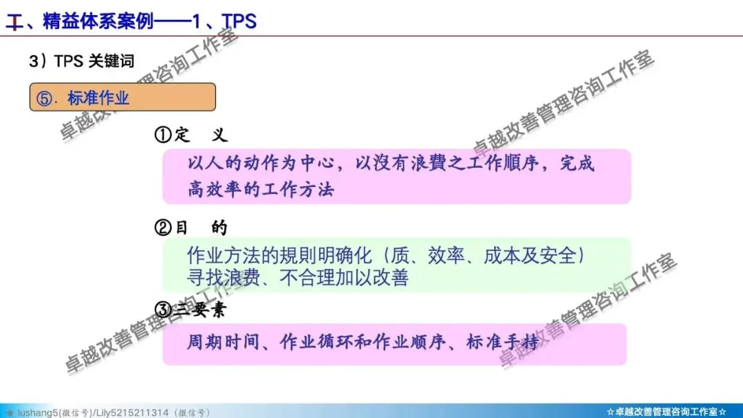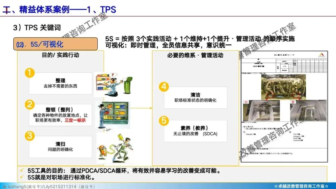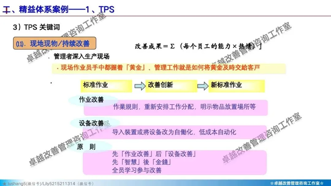 · 标准化作业:将当前的最佳操作方法固定下来,作为持续改进的基准。