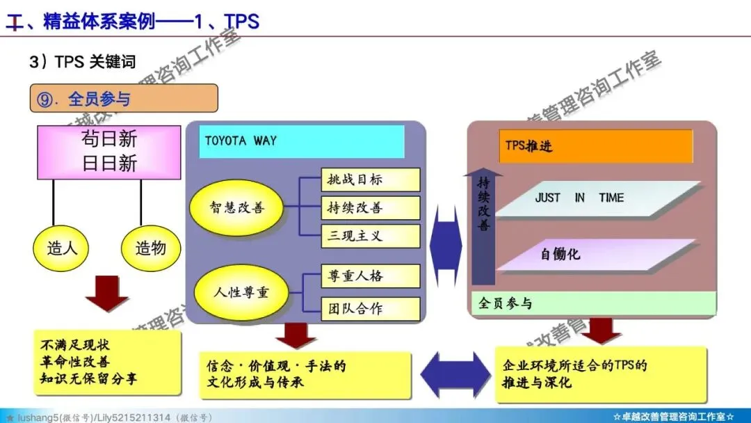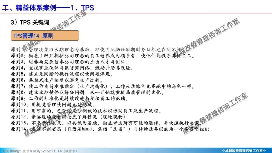 · 高层共识:管理层需要深入理解精益是长期战略,而非短期裁员的手段。丰田模式的第一原则就是“管理决策以长期理念为基础”。