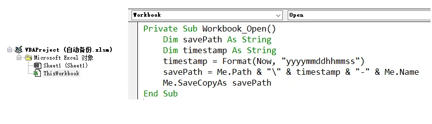今天分享一段VBA代码,让你的Excel在每次打开时,自动在相同目录下生成一个带当前时间戳的副本(格式:20260217153045-原文件名.xlsm),从此告别手滑和意外!