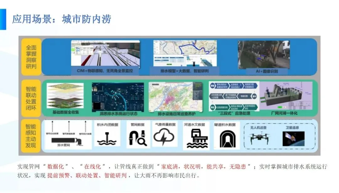 内涝防汛应急指挥: 结合气象数据,对城市内涝风险进行模拟预测,辅助制定科学的防汛排涝方案。