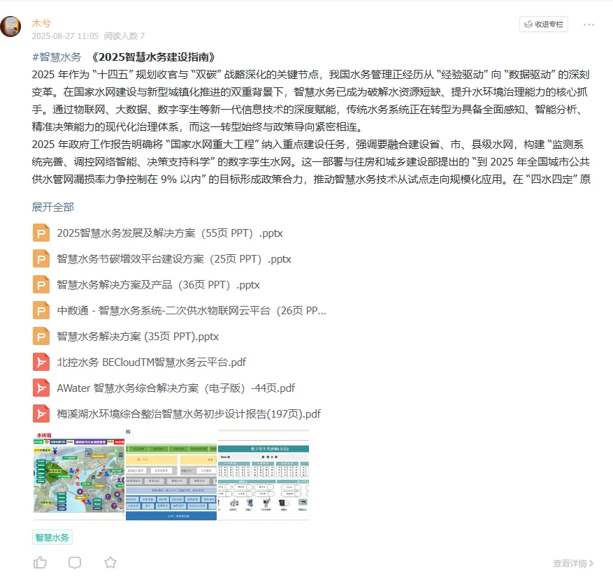 (【数智行业·领地】星球,搜索“智慧水务”标签方案完整版)苹果用户公众号回复“1”加木兮或者直接加木兮(MuxiYuebao0920),享受优惠,加入星球~