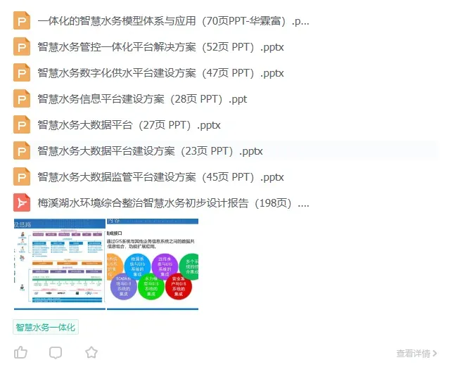 分享一下精品方案:2025智慧水务规划方案(62页 PPT),具体如下,值得参考借鉴~具体如下:
