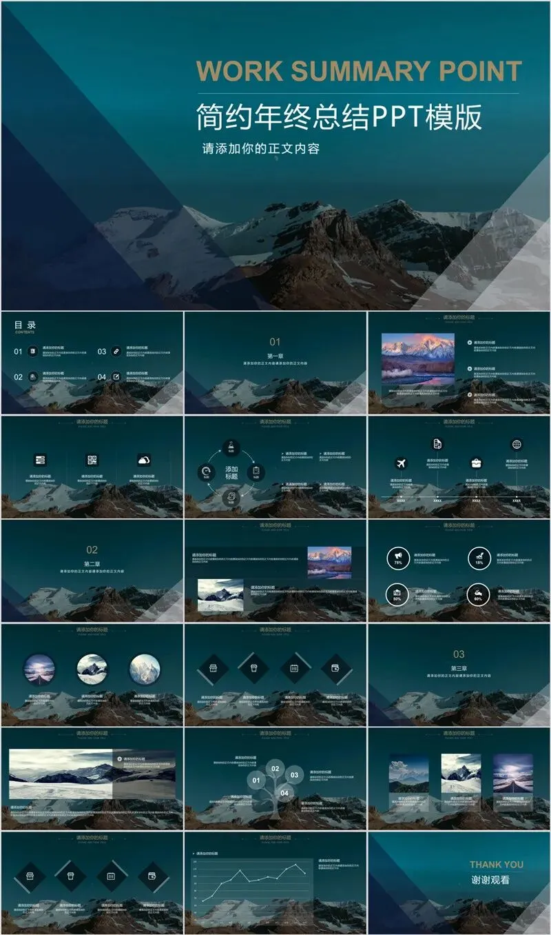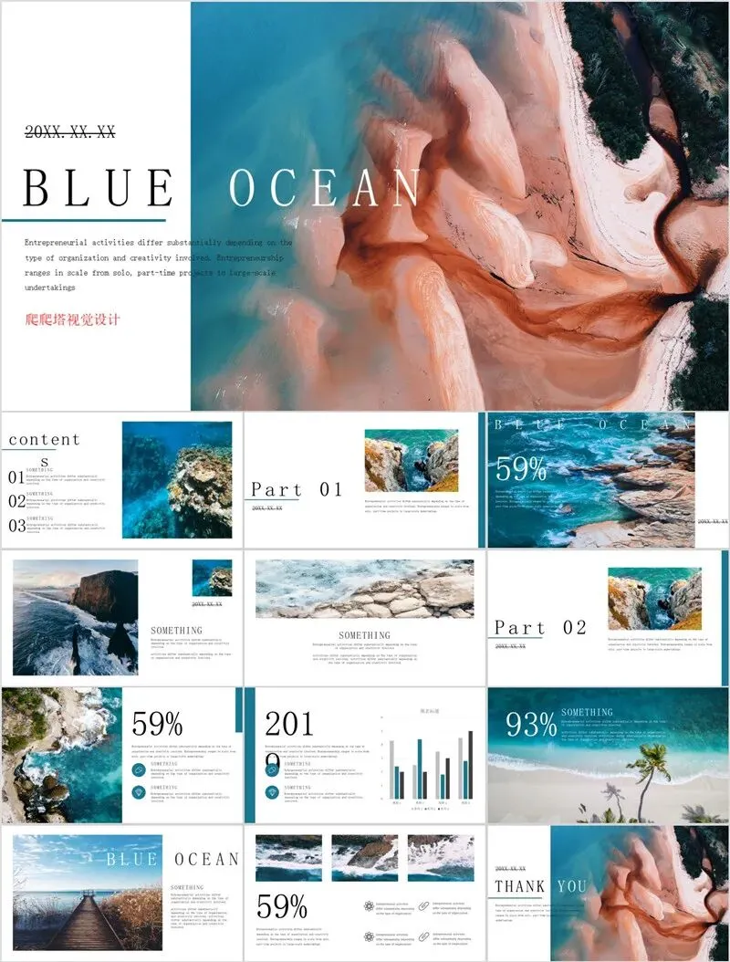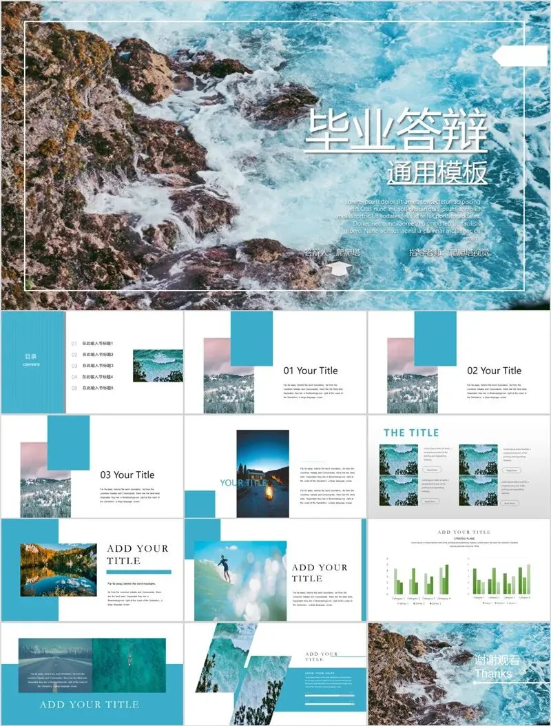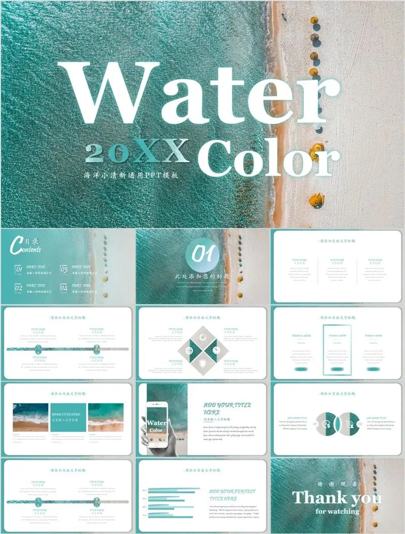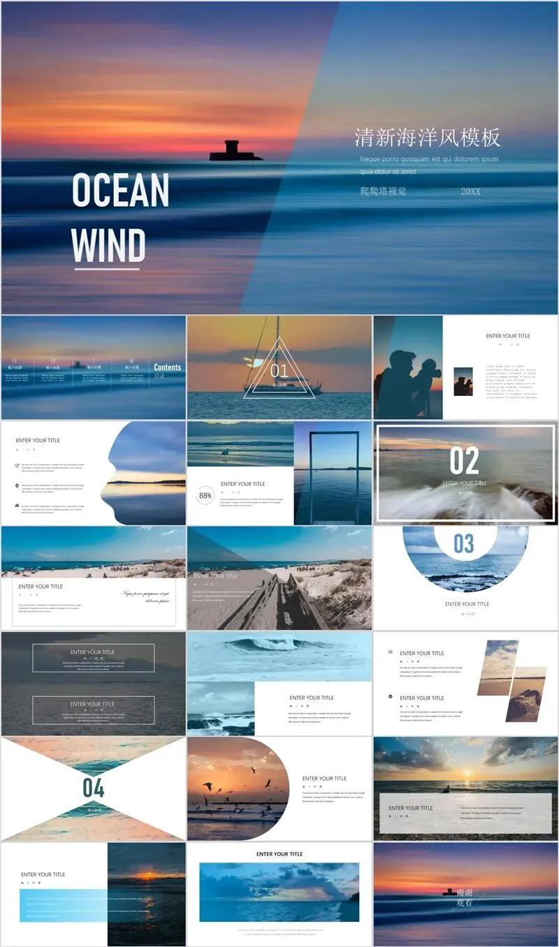 本系列PPT模板精选海洋与雪山两大治愈系风光主题,涵盖旅游攻略、度假项目推介、生态保护宣传等应用场景。