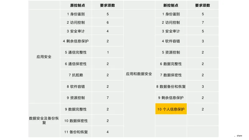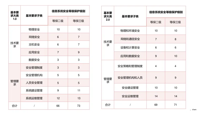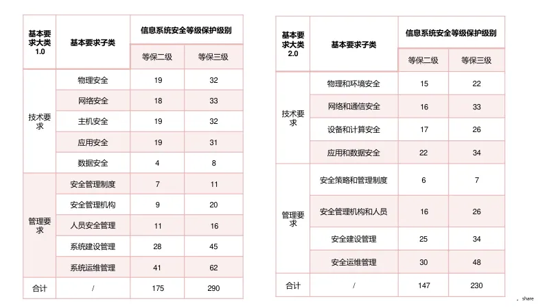 等保 1.0 与 2.0 对比(控制点、要求项)