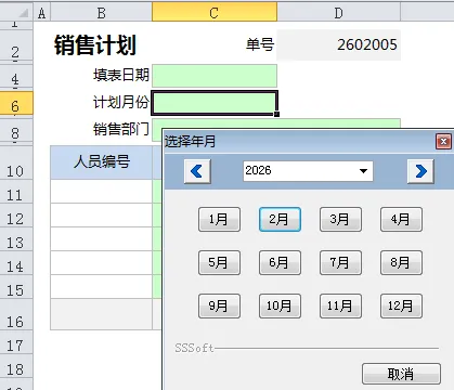 "计划月份"使用的是系统预定义规范“年月选择”,这个规范在填表时,会弹出选择月份的窗口,如下图: