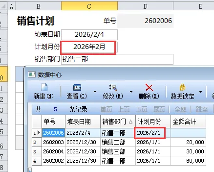 但在数据库中,默认保存采用的是“日期”数据类型,实际存放在数据库是的是所选月份的期初日期,即每月1日。