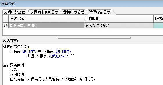 如果没有这个“读写控制公式”,系统会正常保存的,不会有任何提示,但这时的销售部门和销售人员就对应不上了。