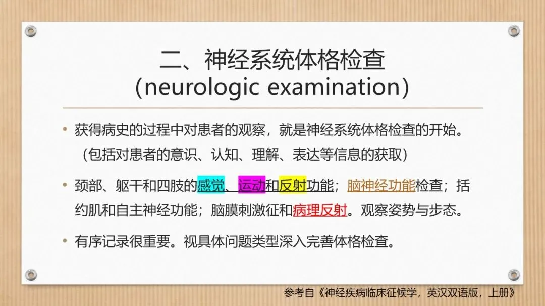 神经系统查体内容多,抽象,需要有条理;有目的;心中有数,知道阳性体征的内涵。这些仅是日常思考积累下来一点点内容,抛砖引玉,记录思绪。