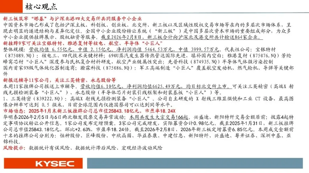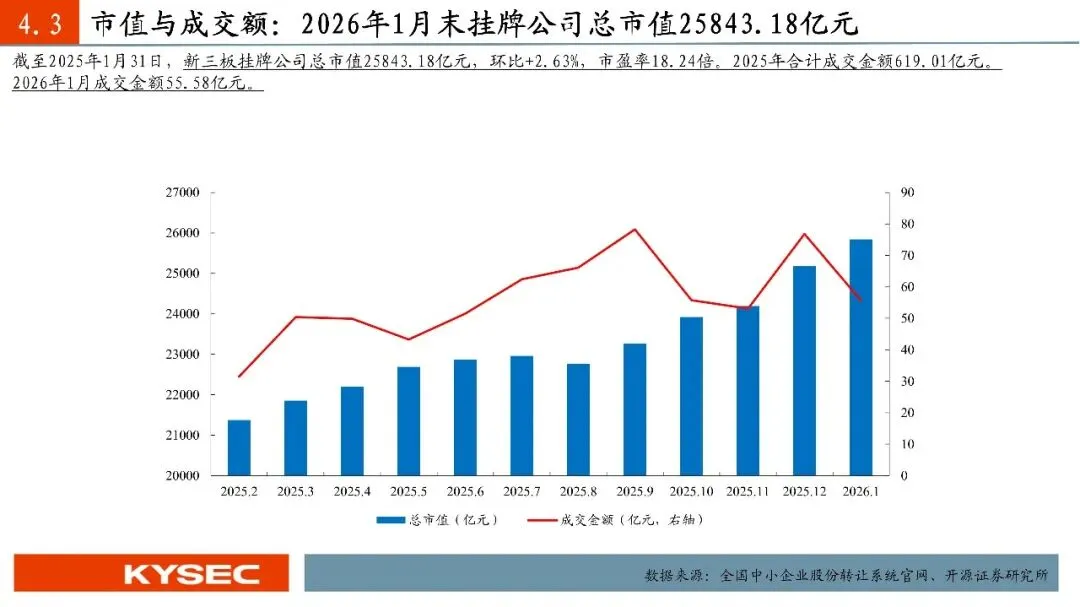 · 市场动态:2025年1月末新三板挂牌公司总市值25843.18亿元,市盈率18.24X