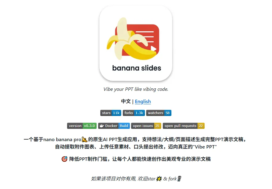 现在,一款真正理解“快”与“美”双重需求的开源项目横空出世——Banana-slides。它不是一个简单的模板填充器,而是基于先进的 nano banana pro 模型打造的原生AI演示文稿生成与编辑系统,致力于实现真正的“Vibe PPT”理念:你描述氛围,AI生成设计;你口头修改,AI实时响应。