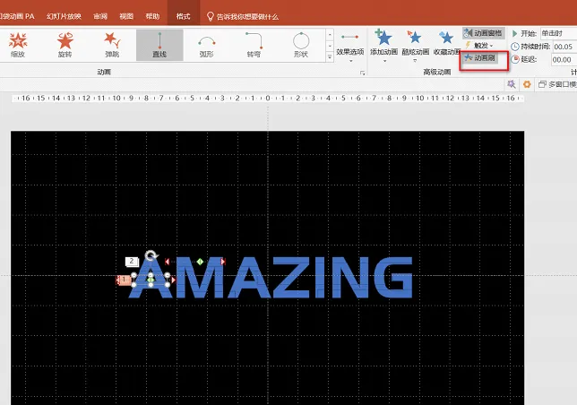 给所有的形状添加动画效果,快捷操作是,点击刚刚添加动画的形状,选择【动画刷】,再为其他形状添加相同的动画效果。(为了凸显文本错位的动态效果,建议页面靠左的形状选择先右后左的路径动画,页面靠右的形状选择先左后右的路径动画。)