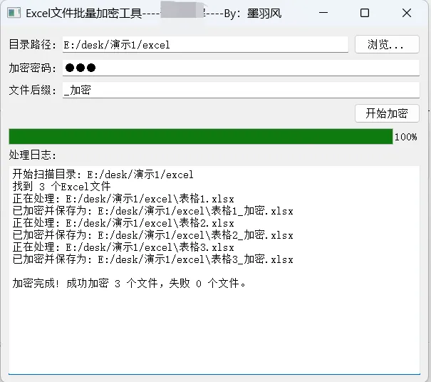 Excel 文件批量加密工具是一款专为办公场景打造的免费实用工具,支持离线使用,无需联网即可批量对 Excel 文件进行密码加密保护。它可以帮助用户快速为大量 Excel 文件设置统一的访问密码,同时支持自定义加密后文件的名称后缀,让文件管理更清晰,有效提升数据安全性和办公效率。