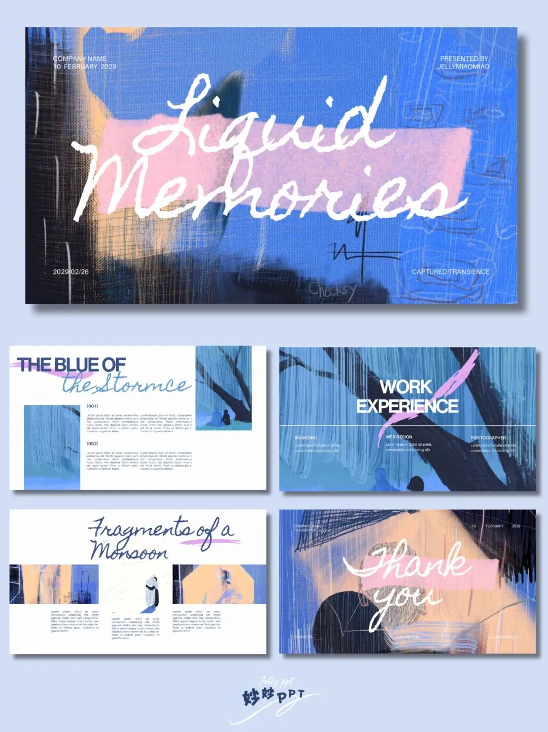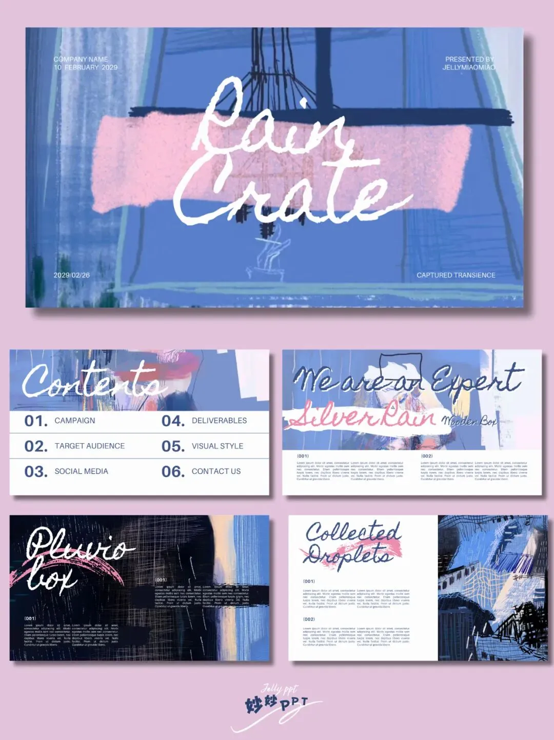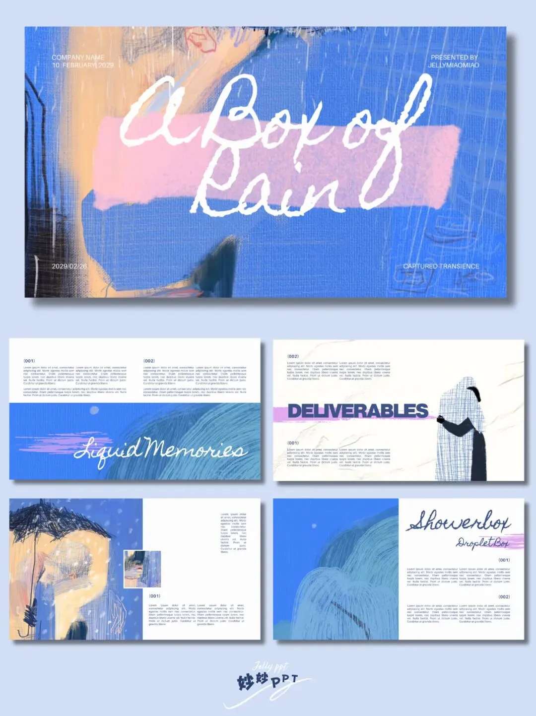 >300|雨水一盒 简约风PPT|蓝色系ppt|艺术风PPT|高级感排版|ppt模板|课件