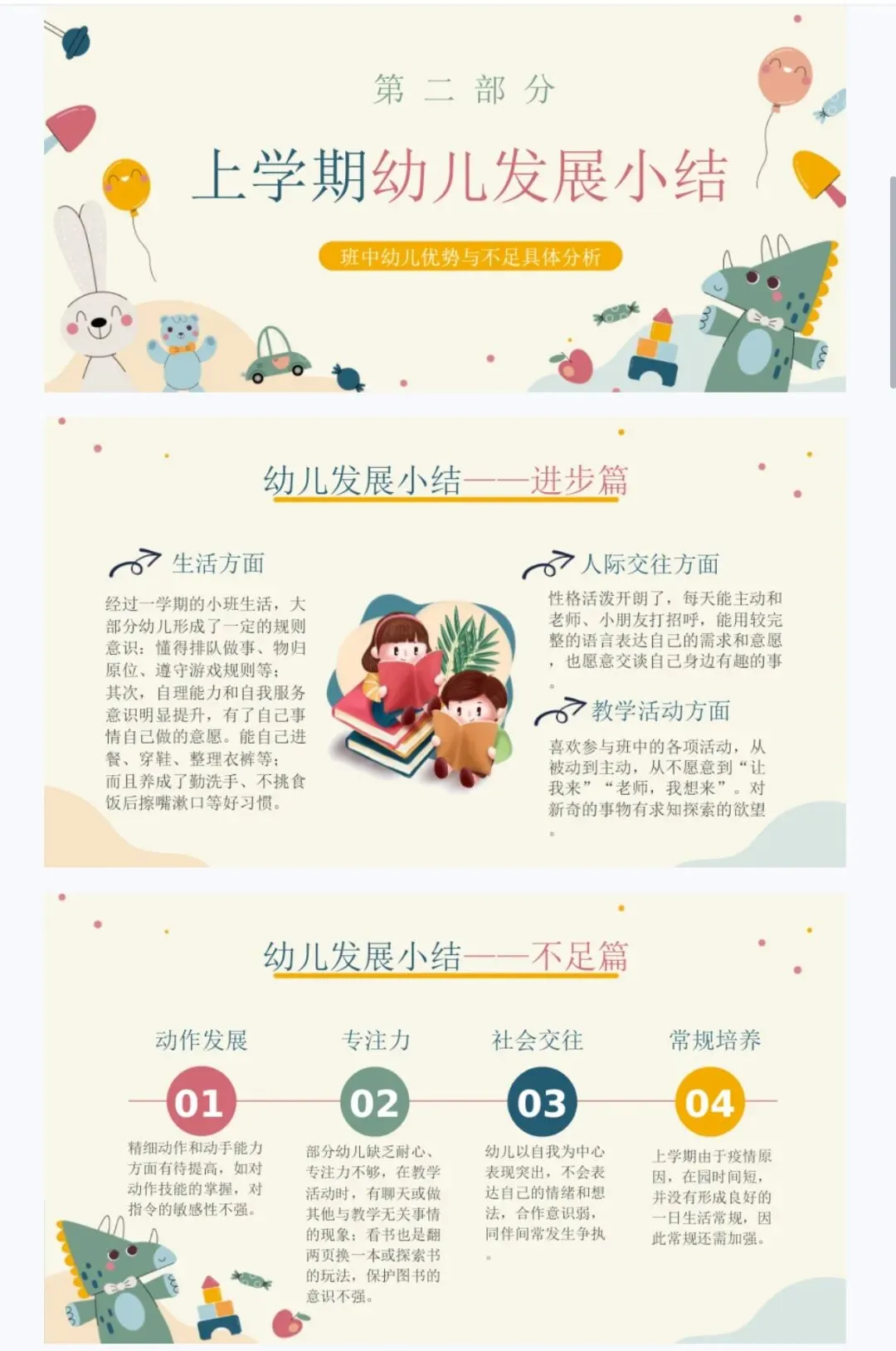 1.人际交往方面:这学期主要引导幼儿关心周围的同伴和成人,愿意与人交往,有良好的交往习惯。学习与同伴友好交往与合作,学习如何处理与他人的冲突,学会谦让和分享。