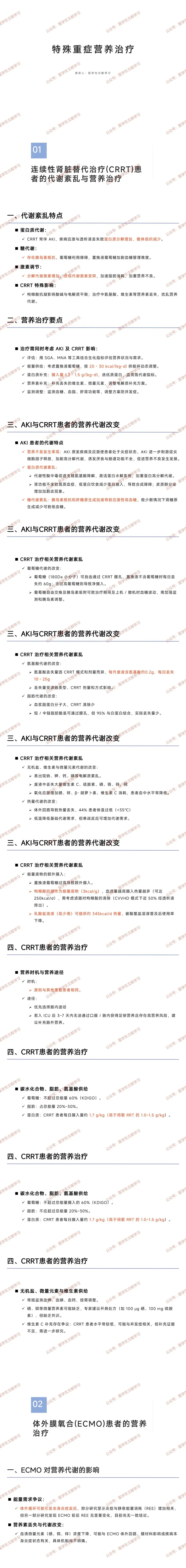 特殊重症营养治疗的核心是 “个体化”,需充分考虑治疗技术(CRRT/ECMO)对代谢的特殊干扰(如营养素丢失、额外热量摄入)。