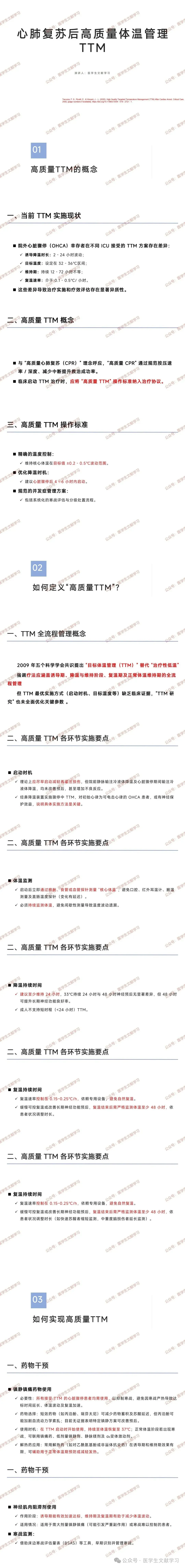 TTM 实施需标准化:TTM 是复杂综合治疗,需通过标准化 “干预集” 最大化神经保护效应,临床应制定规范化流程提高实施同质性,以改善患者预后。