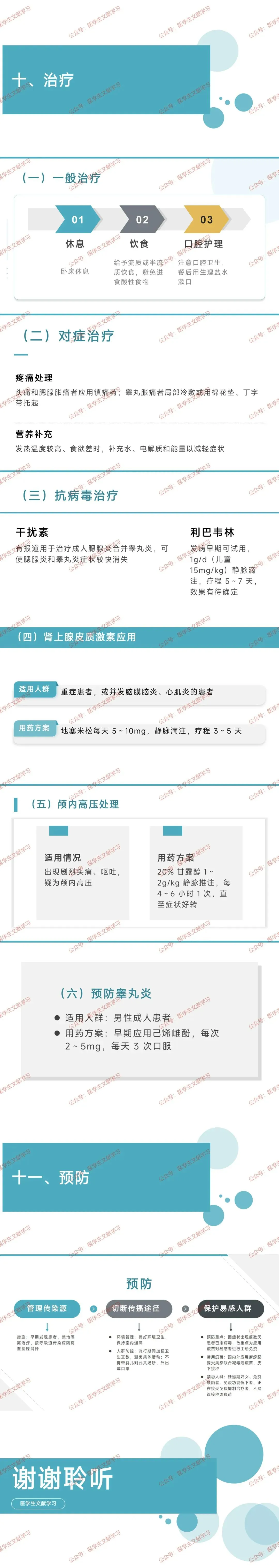 发病时间:多在腮腺炎发病后 4~5 天,部分患者脑膜炎先于腮腺炎