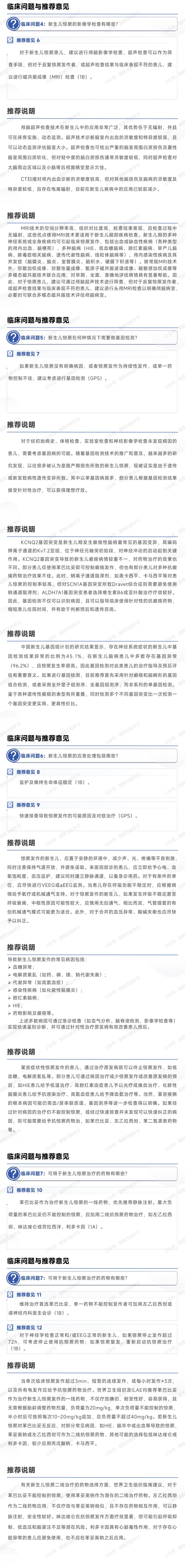 - 颅脑超声可作为影像学筛查手段,反复惊厥发作或超声结果与临床表现不符时,建议做头颅磁共振成像(MRI),必要时联合多模态磁共振技术。