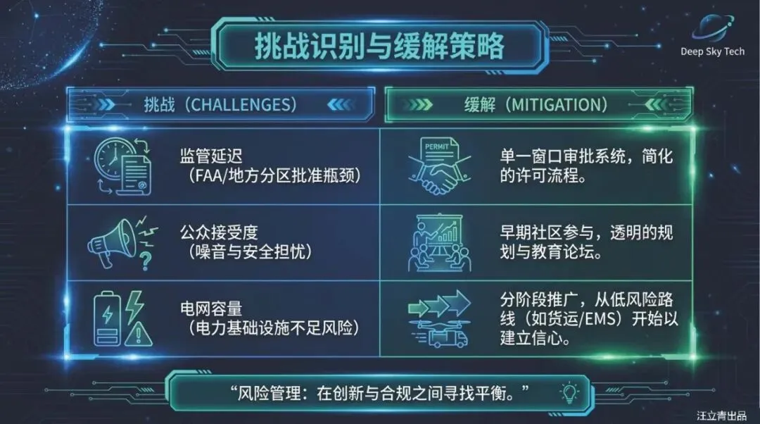 特拉华州已经勾勒出了清晰的三阶段实施蓝图。从2025年到2030年的第一阶段将侧重于规划与利益相关者参与,成立专门的任务组来制定监管框架和选址标准;2030年至2035年的第二阶段将进入基础设施建设的关键期,在现有机场部署垂直起降点并启动试点项目;而到了2035年至2045年的第三阶段,AAM将实现全面扩展,深入整合到州内的公共交通、共享出行及跨城运输体系中。通过政企学研的紧密协作,特拉华州不仅能够克服监管、技术和资金的重重阻碍,更将以先行者的姿态,定义未来几十年的智能出行新标准,让高效、便捷的空中交通成为每位居民触手可及的现实。