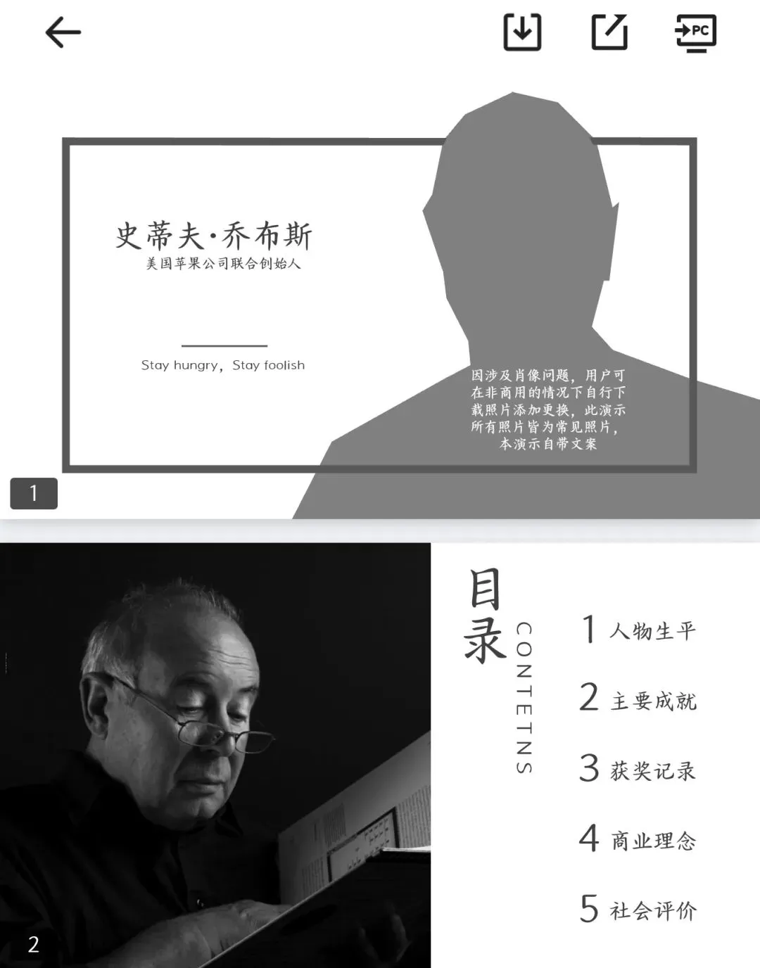 本文分享的是【2026最新版人物介绍-乔布斯 PPT模板】免费下载打印