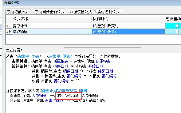 2、第一条公式的写法和前面讲过公式写法一样,不过这次是从销售计划单中提取销售业务员的销售计划额。
