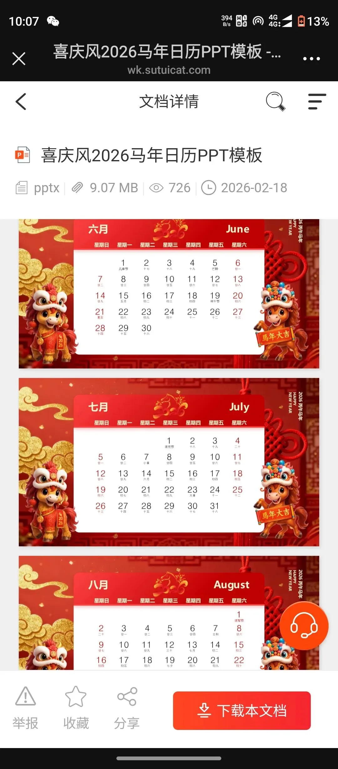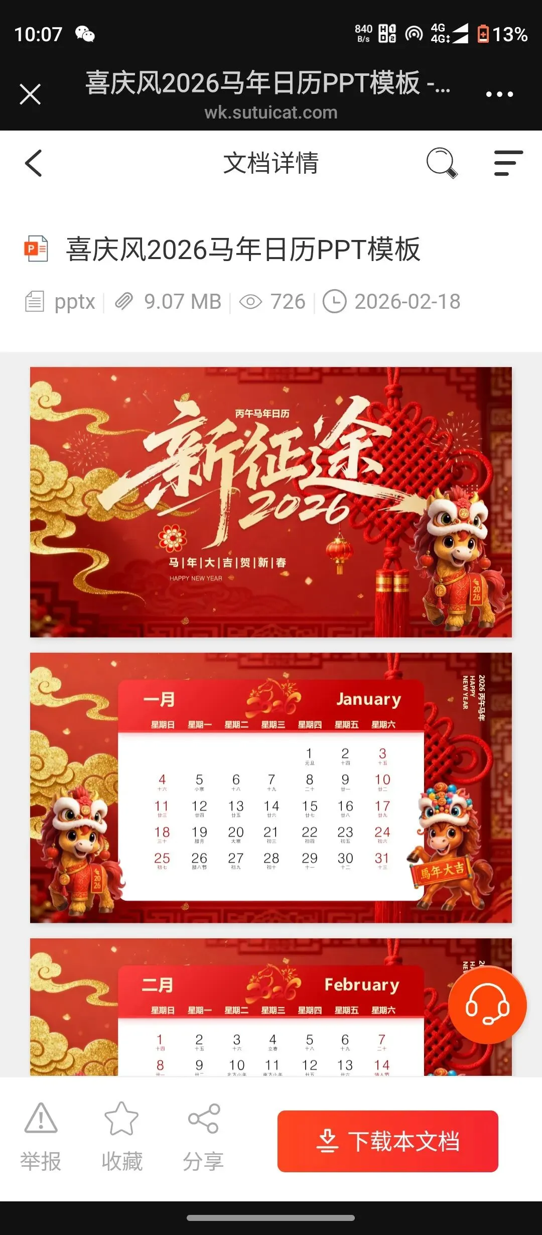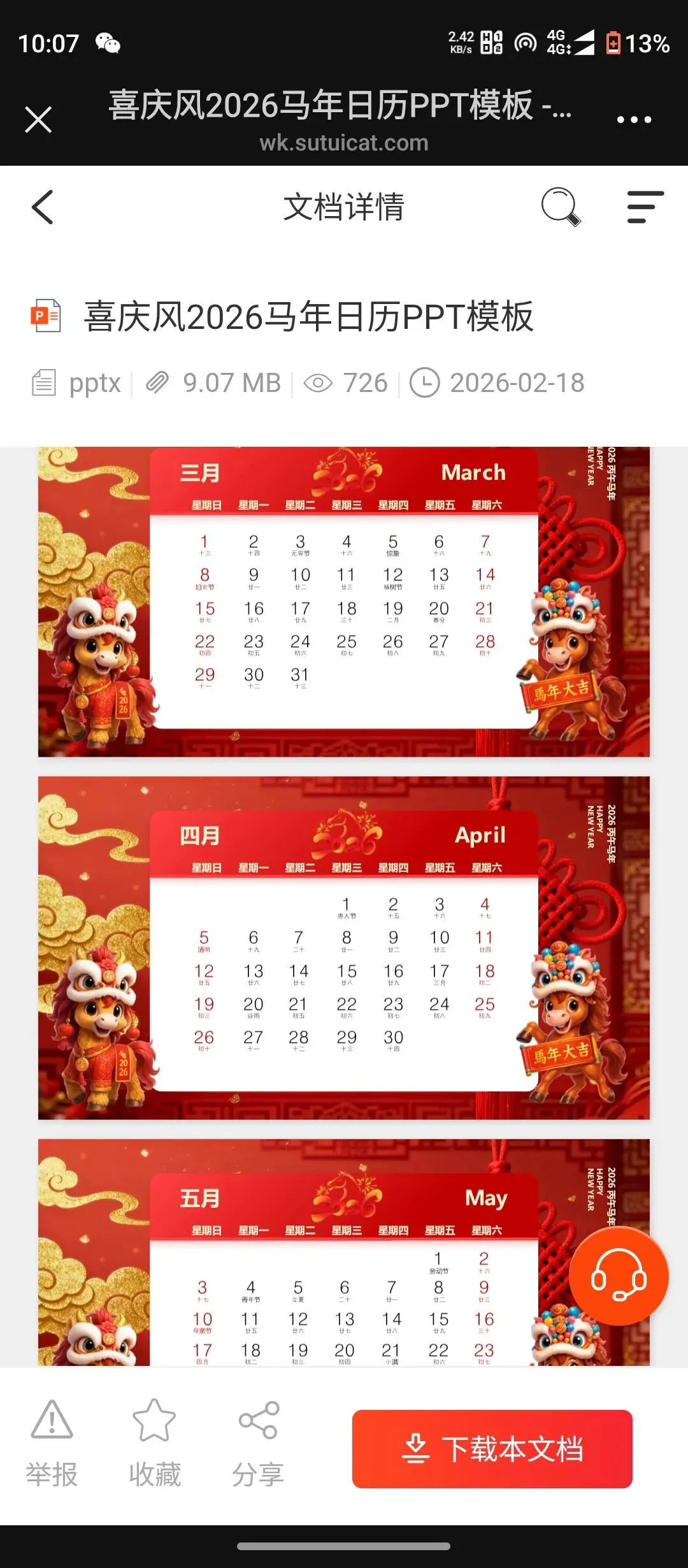>喜庆风2026年马年日历PPT模板