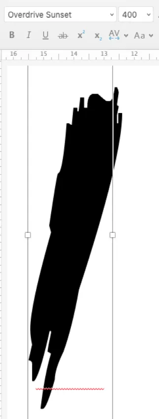 输入英文字母“i”。插入——文本——文本框——绘制横排文本框,选择Overdrive Sunset字体,字号设置为400,一个笔触图形就出来了,如下图所示: