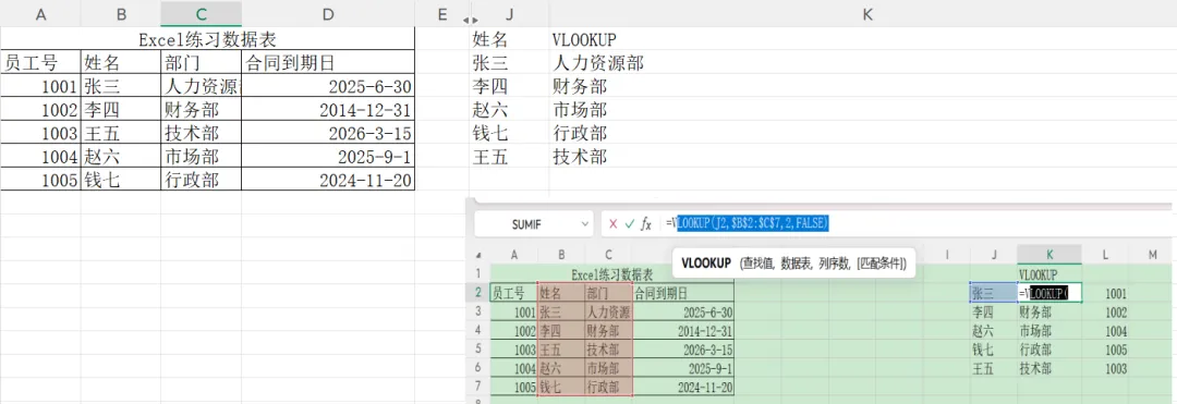 而姓名查员工就用不了vlookup函数,为什么?你做完会发现如果写B3:A7,你会看到系统里面又会变成A3:B7