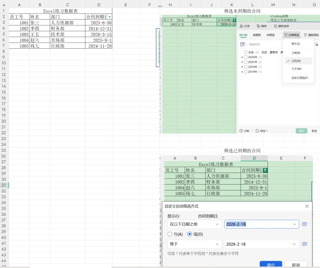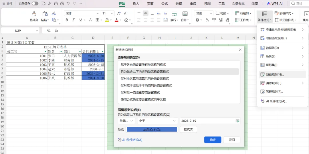 选中D3:D9,选中只为包含以下内容的单元设置格式,选择小于,写上日期,单击格式选择喜欢的颜色确定即可。