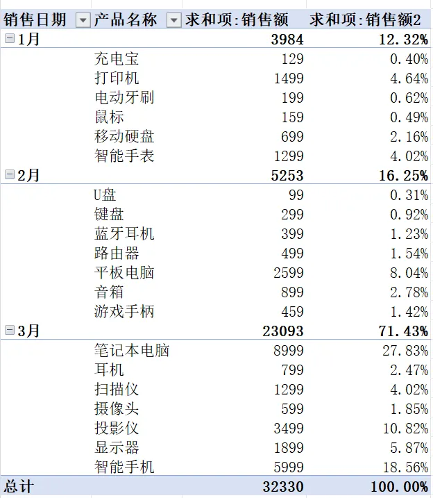 (1)把销售日期放在行,右键单击这个表格上面的销售日期单击组合选择月。