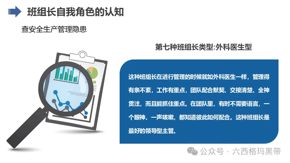 外科医生型:这类班组长善于发现和解决生产过程中的关键问题,就像外科医生一样精准而高效。他们通常具备较强的分析能力和决策能力,能够在复杂多变的生产环境中迅速找到问题的根源并采取有效的解决措施。
