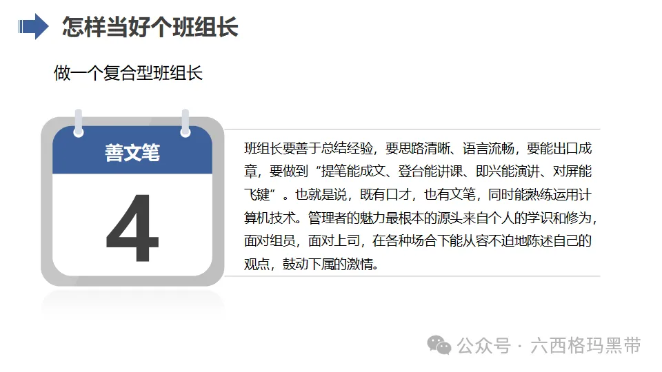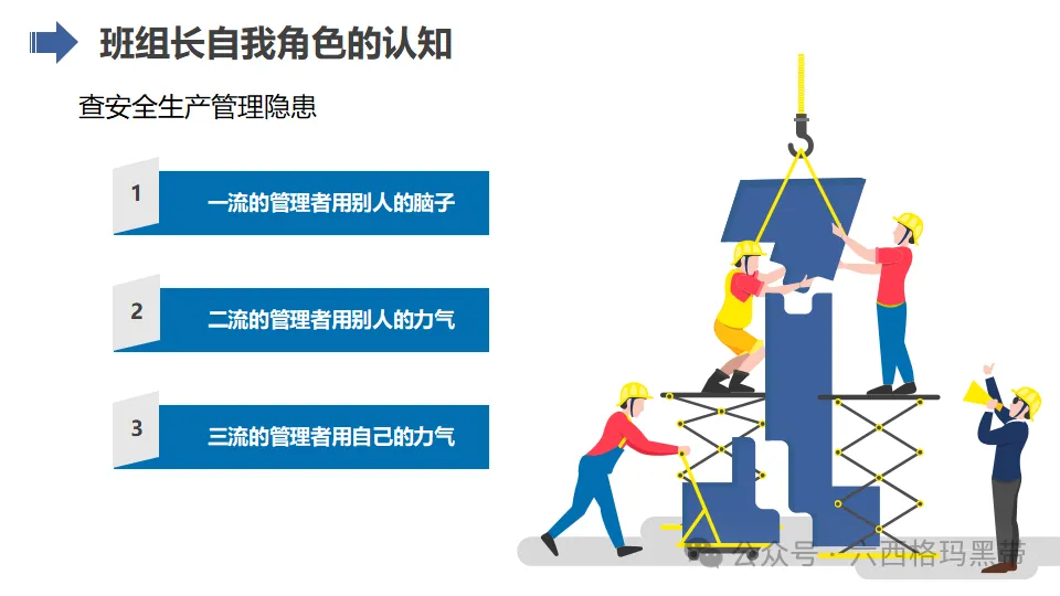 - 主心骨:在团队中,班组长应成为员工的精神支柱和核心力量,通过自身的言行和榜样作用,激发员工的积极性和创造力,推动团队不断前进。