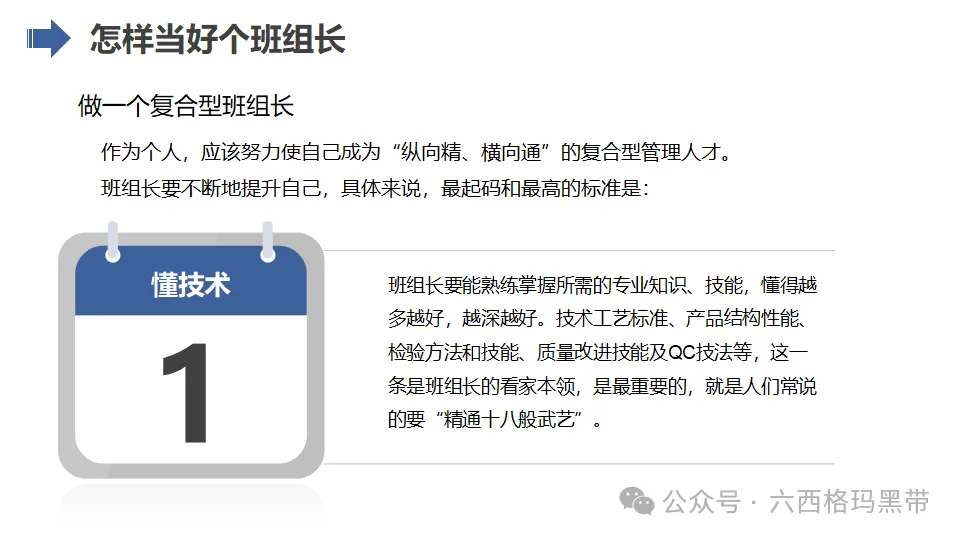复合型班组长是指具备多种能力和素质的班组长,他们不仅能够胜任本职工作,还能够应对各种复杂情况和挑战。要做一个复合型班组长,需要具备以下几个方面的能力: