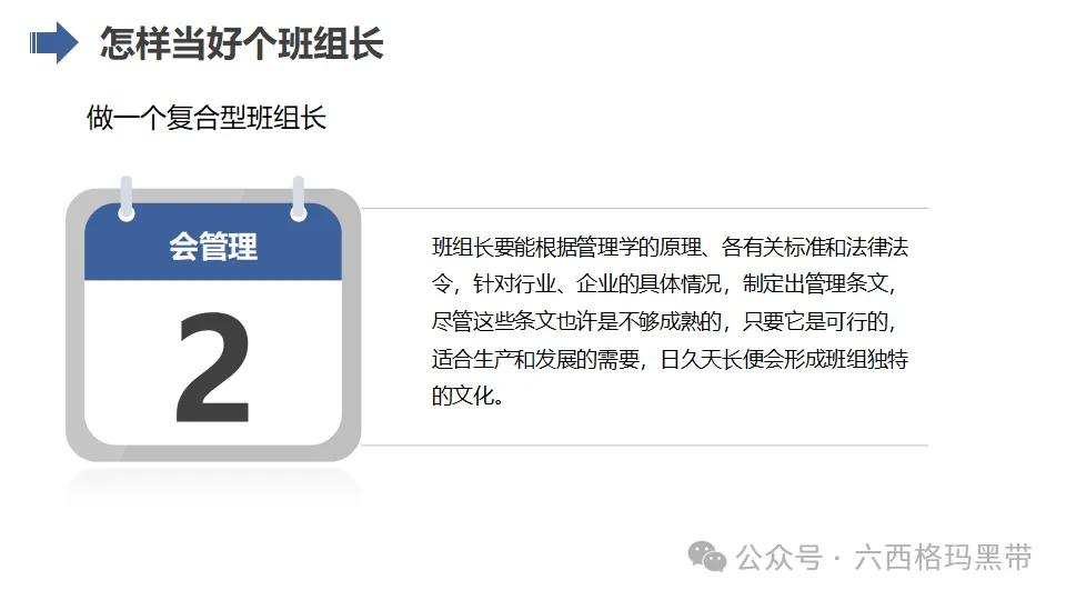 - 管理精神传播者:班组长应深入理解企业的管理理念和精神,通过自身的行为和言语将其传达给团队成员,推动企业文化的落地和生根。