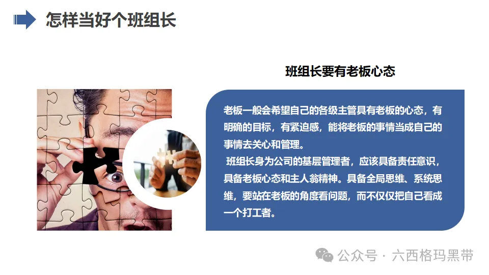 班组长虽然不是企业的老板,但应具备老板的心态和思维方式。这意味着班组长需要站在企业的角度思考问题,关注企业的整体利益和长远发展。具体来说,班组长应具备以下几个方面的老板心态: