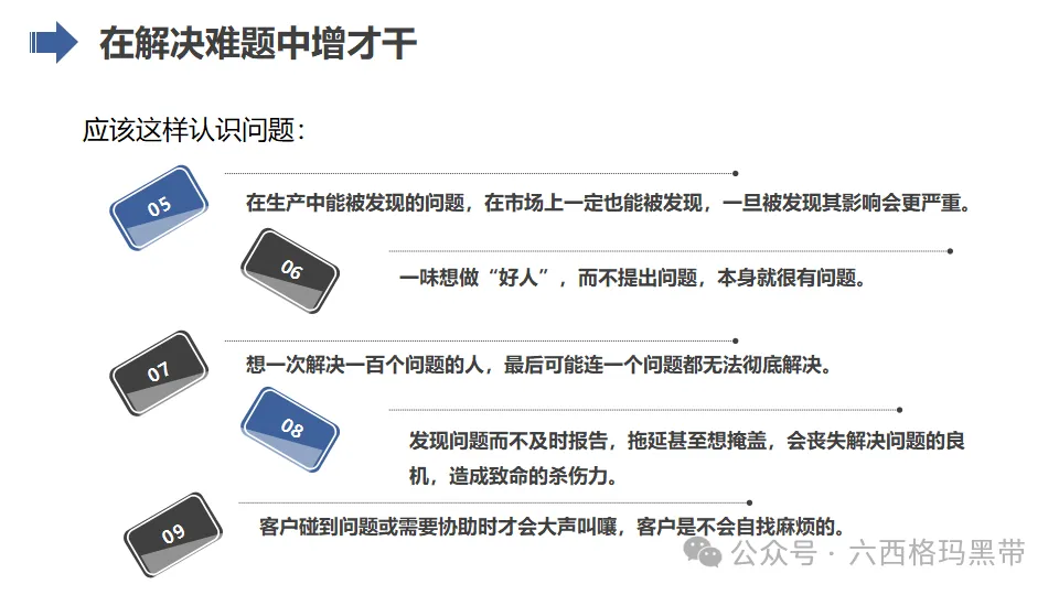 当现场出现问题时,班组长应连续追问六个为什么,以深入挖掘问题的根本原因。这种追问方式有助于避免仅仅解决表面问题,而忽略了更深层次的原因。通过不断追问,可以逐步揭示问题的本质,从而制定更为有效的改进措施。