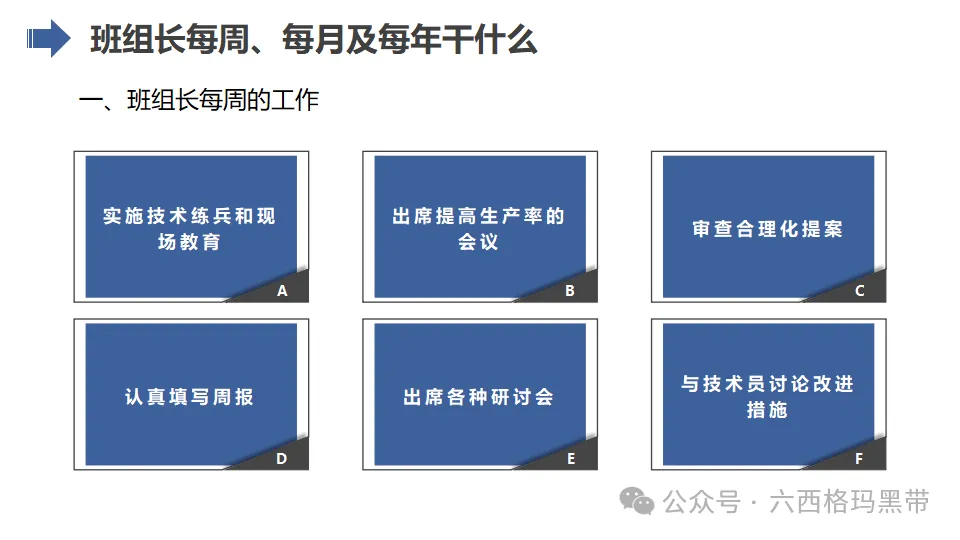 班组长作为企业的基层管理者,肩负着重要的使命和责任。以下是班组长的6项主要使命: