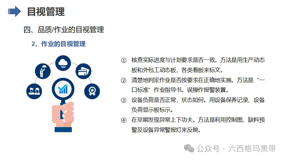 - 标准化作业:制定标准化的作业流程和操作规范,确保员工按照统一的标准进行操作,提高产品质量和生产效率。