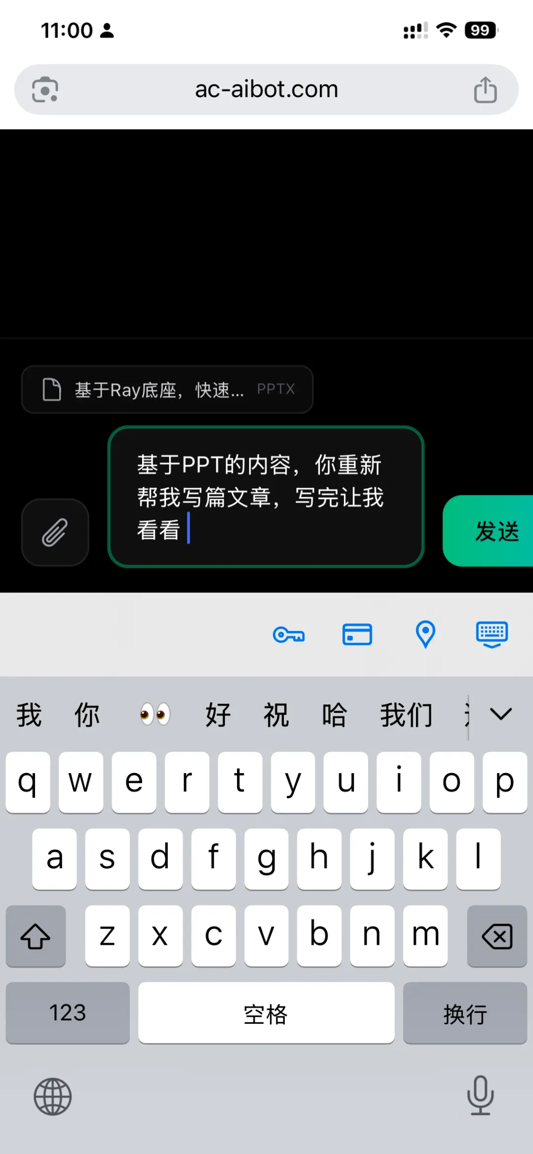 现在的做法:打开手机,进 AC-AIBot,上传文件,说一句话。