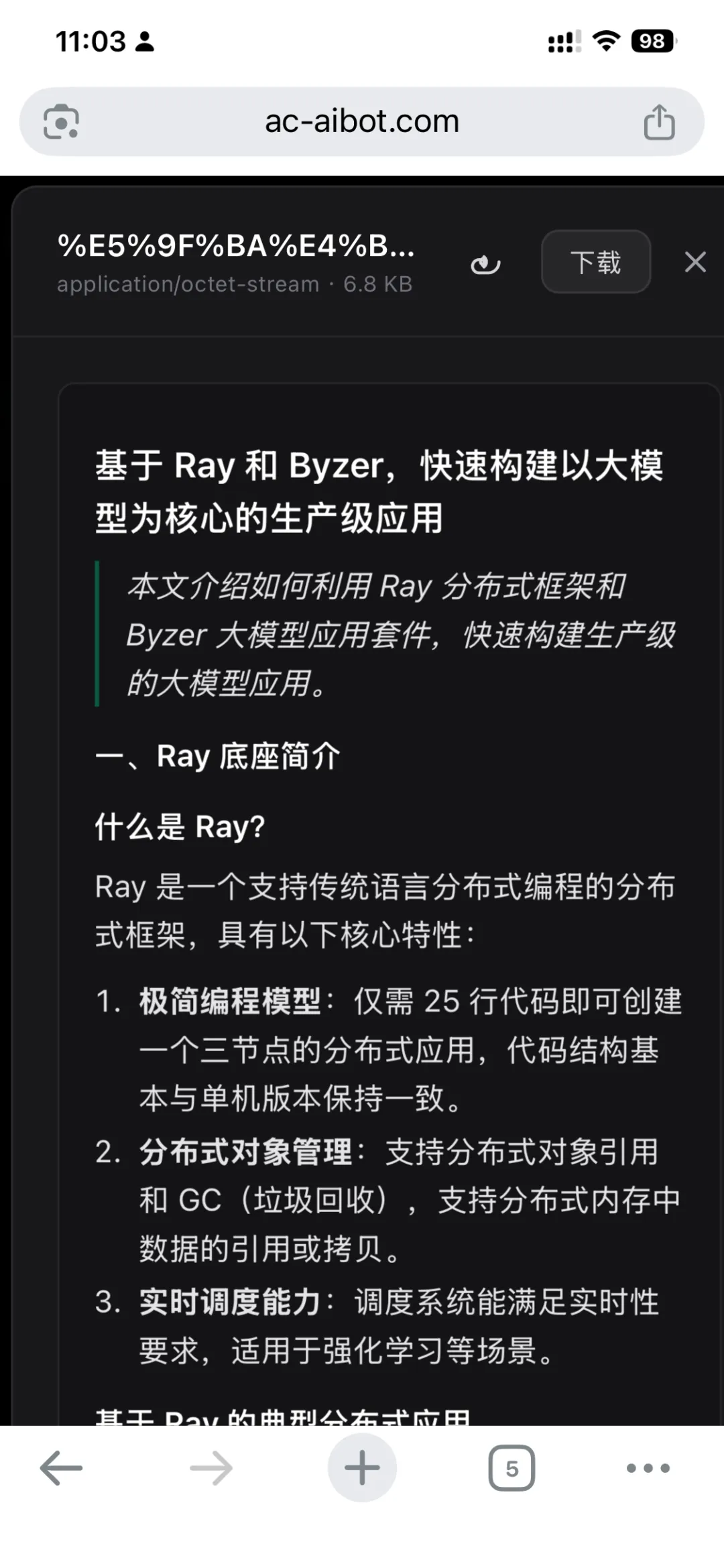 手头有一份 PPT——关于"基于 Ray 和 Byzer 快速构建大模型生产级应用"的技术分享材料。内容不错,但格式是 PPT,不方便传阅。想把核心内容重新整理成一篇可读性更强的文章。