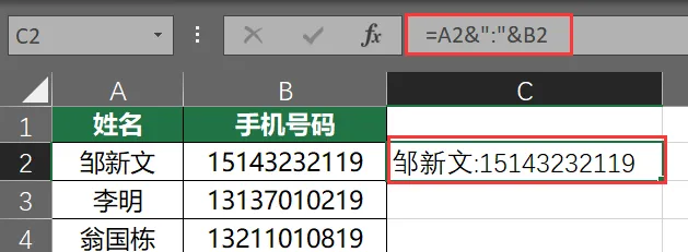 ✅ 搞定! 姓名和电话已经"缝"在一起了。