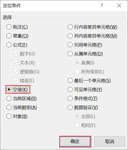 Step 2: 按 Ctrl+G → 点击【定位条件】→ 选择【空值】→ 确定
