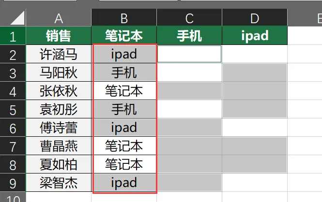Step 1: 选中空白单元格(比如C2)