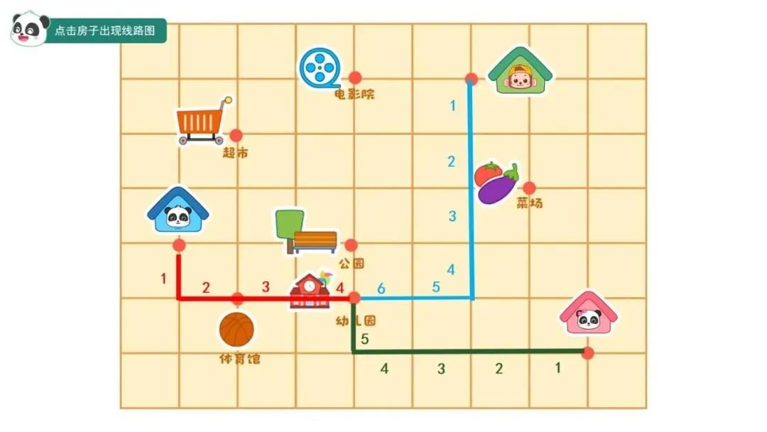 ——三位小伙伴从家里到幼儿园该怎么走呢?