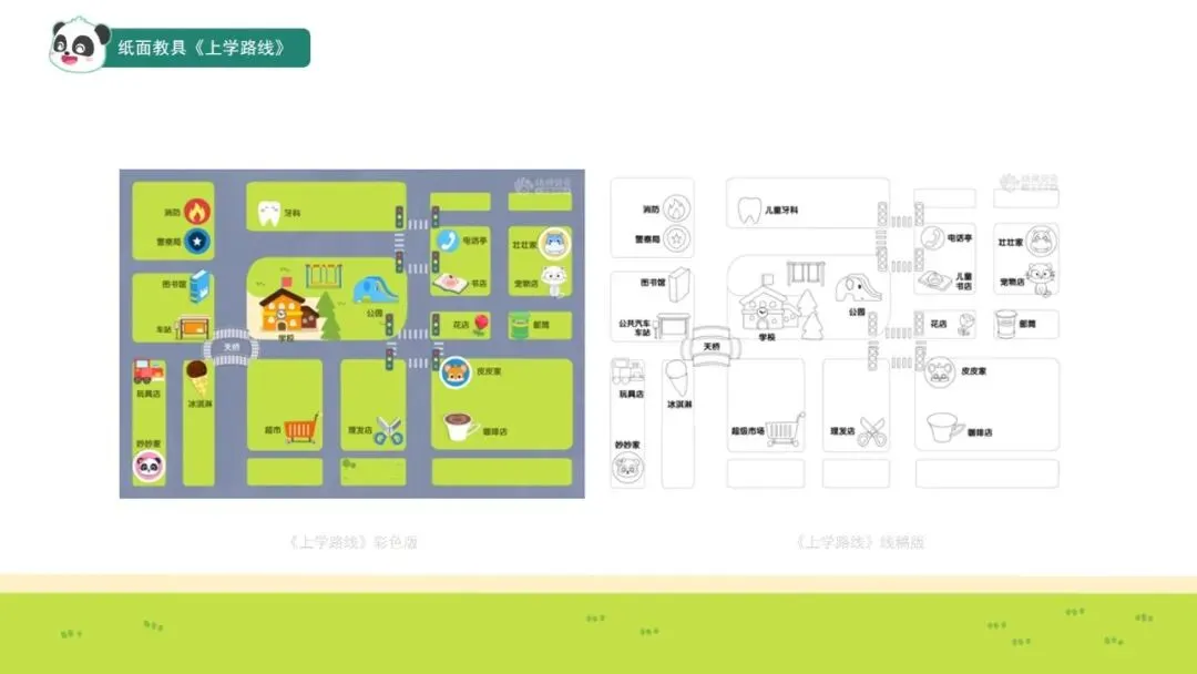 家长可为幼儿准备一些简易地图,如景区游览地图、公园地图等,帮助幼儿巩固路线比较及方位词的运用。