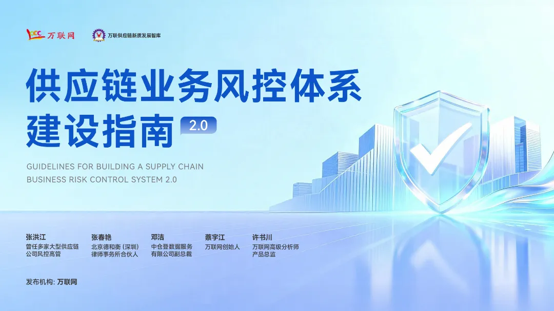 为此,我们于2025年12月23日举办的2025国企数字化风控在线论坛上,重磅发布了由万联网联袂万联网金牌讲师“万联网首席风险管理实战专家张洪江“、“万联网首席供应链业务法律风控专家张春艳”、“中仓登数据服务有限公司副总裁邓洁”编撰,并获得中仓登、高达软件、朗链科技、汇融数科、合合信息、中诚信征信、鑫元视科技等企业大力支持的《供应链业务风控体系建设指南2.0版本》(简称:风控指南)