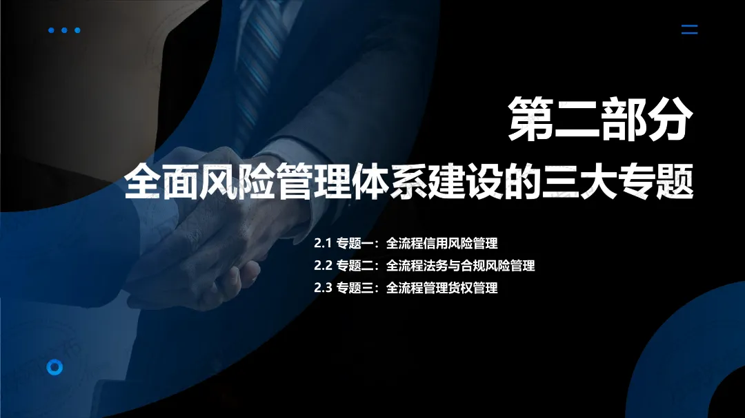 第二天课程,我们邀请了拥有丰富诉讼经验、近20年供应链风控实务经验、给多家国企提供法律与合规服务的北京德和衡(深圳)律师事务所合伙人『张老师』,从内部业务运营风控视角,详细分享供应链业务负面清单制定、合同/单据/订单设计、事中运营操作环节、事中监督管理环节、融资性贸易沙盘案例等,帮大家落实供应链业务全员全流程操作细则的制定。此外,张老师还会结合亲身代理的多起风险案件,并组织学员进行融资性贸易风险案例模拟演练,给大家拆解事前合同签订的隐藏陷阱与事中运营的潜在风险,如合同签署中的标的条款设计、应急触发条款设计、单据设计、出入库环节的操作疏漏、商务跟单技巧、物流运输服务商/仓储方准入评估与动态考核设计、盘库巡库中的执行偏差、盯价细节、风险复盘方法(客户回访/业务风险/单据)等实务细节,每个环节都配套了具体操作方法。