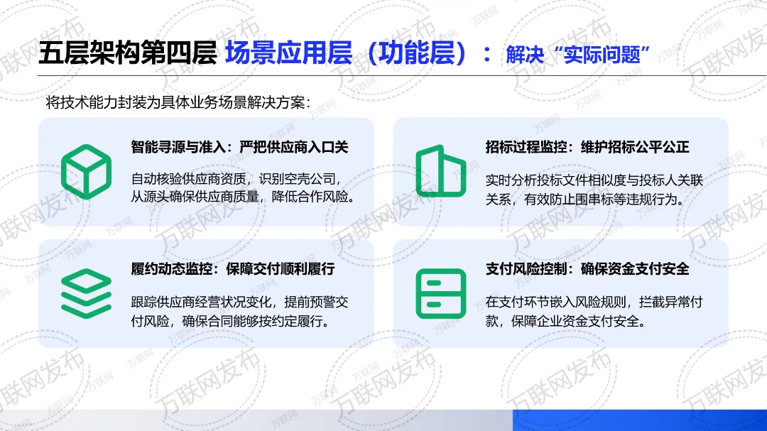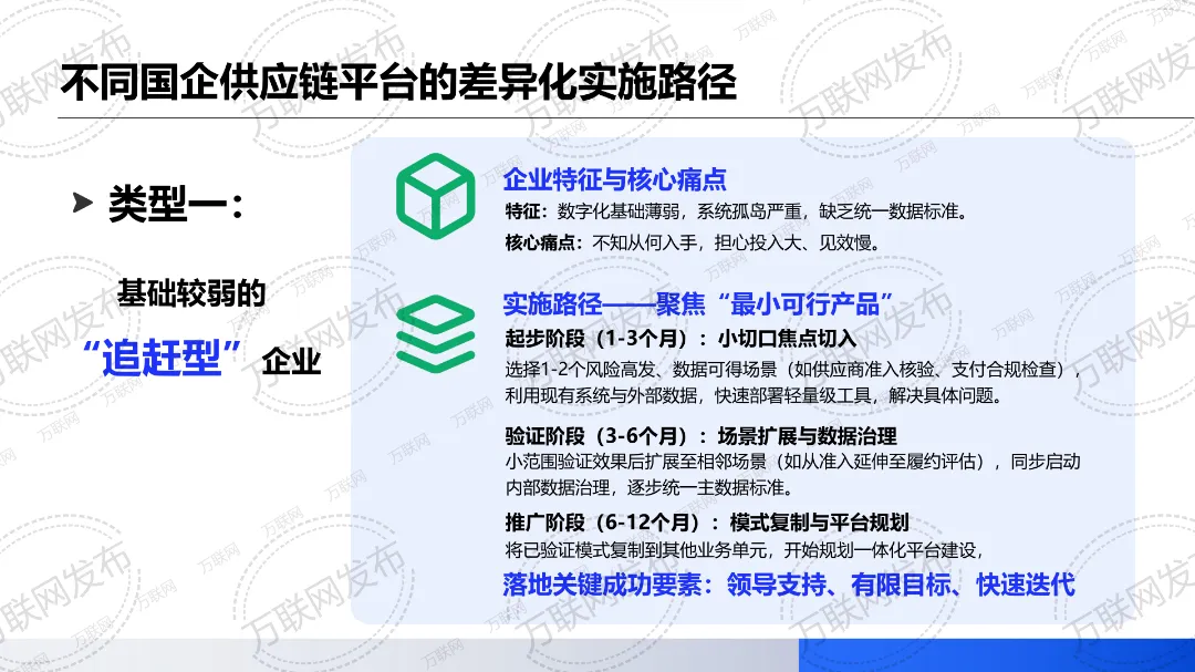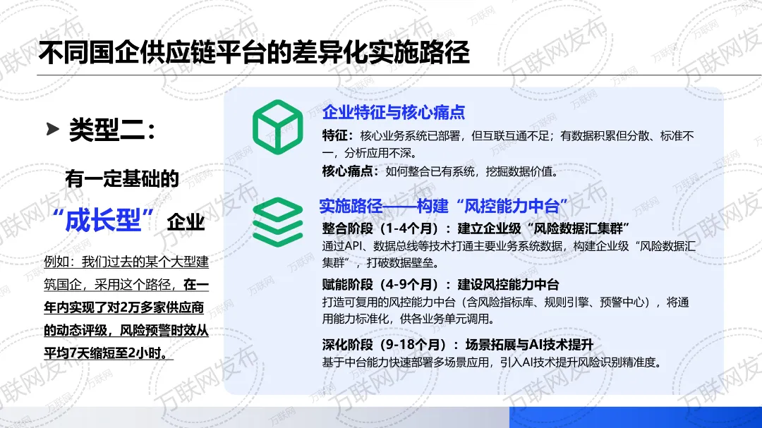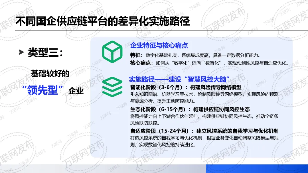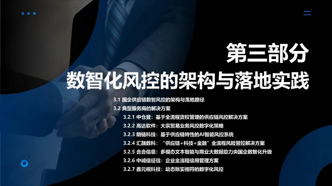 《风控指南2.0版本》在《风控指南1.0版本》讲述全面风险管理体系构建的思路上做了更新迭代,更加侧重从供应链风控数智化视角,分享国企供应链平台风控数智化的核心内容架构、不同国企供应链平台的差异化实施路径,以及当前国企供应链平台风控数智化的领先实践案例。其中不乏有适合数字化基础薄弱、系统孤岛严重、缺乏统一数据标准的“追赶型”国企参考的案例,也有适合核心业务系统已部署但互联互通不足的“成长型”国企学习的案例,更有数字化基础扎实&系统集成度高且具备一定的数据分析能力的“领先型”国企可借鉴的案例。